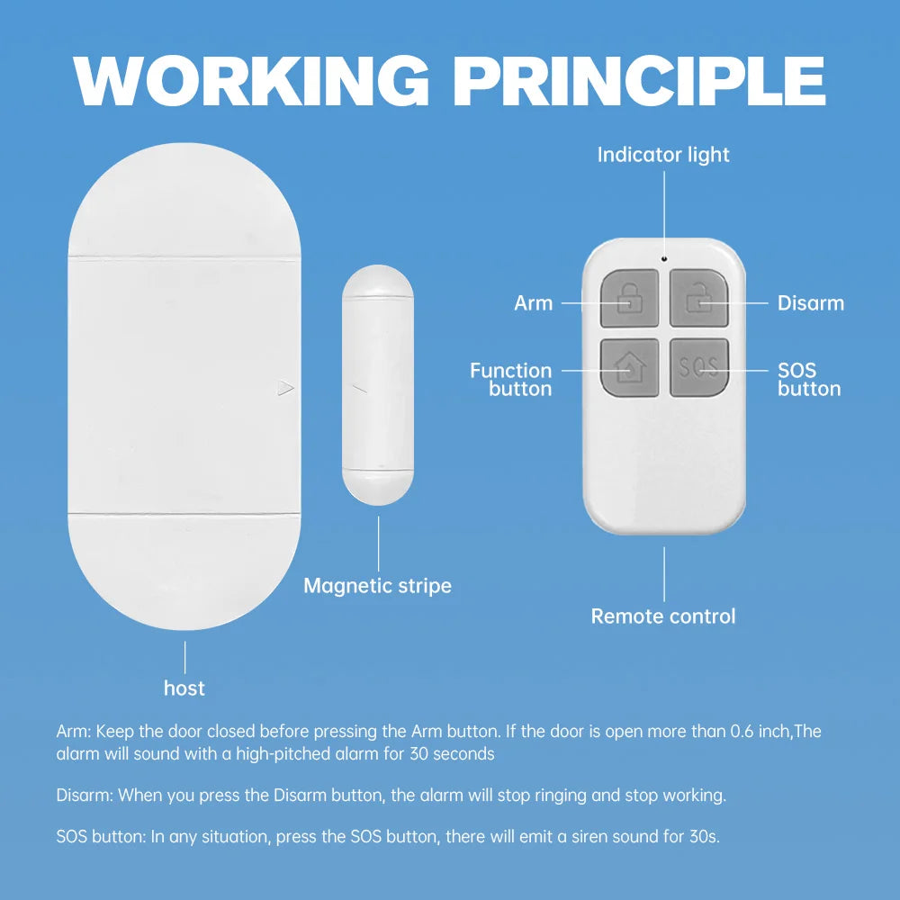 Der HausWacht ist ein leistungsstarker magnetischer Tür- und Fensteralarm, der Ihr Zuhause effektiv schützt. Sobald eine Tür oder ein Fenster geöffnet wird, löst der Sensor einen lauten 130-dB-Alarm aus und warnt sofort vor unbefugtem Zutritt oder gefährlichen Situationen.